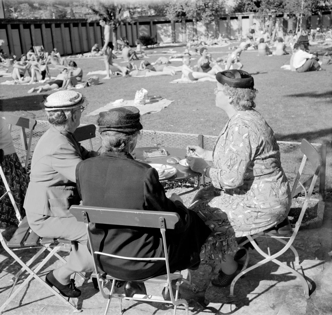 Femmes attablées à la buvette des Bains de la Motta (entre 1950 et 1960) - ©Bibliothèque cantonale et universitaire de Fribourg, Fonds Jacques Thévoz
