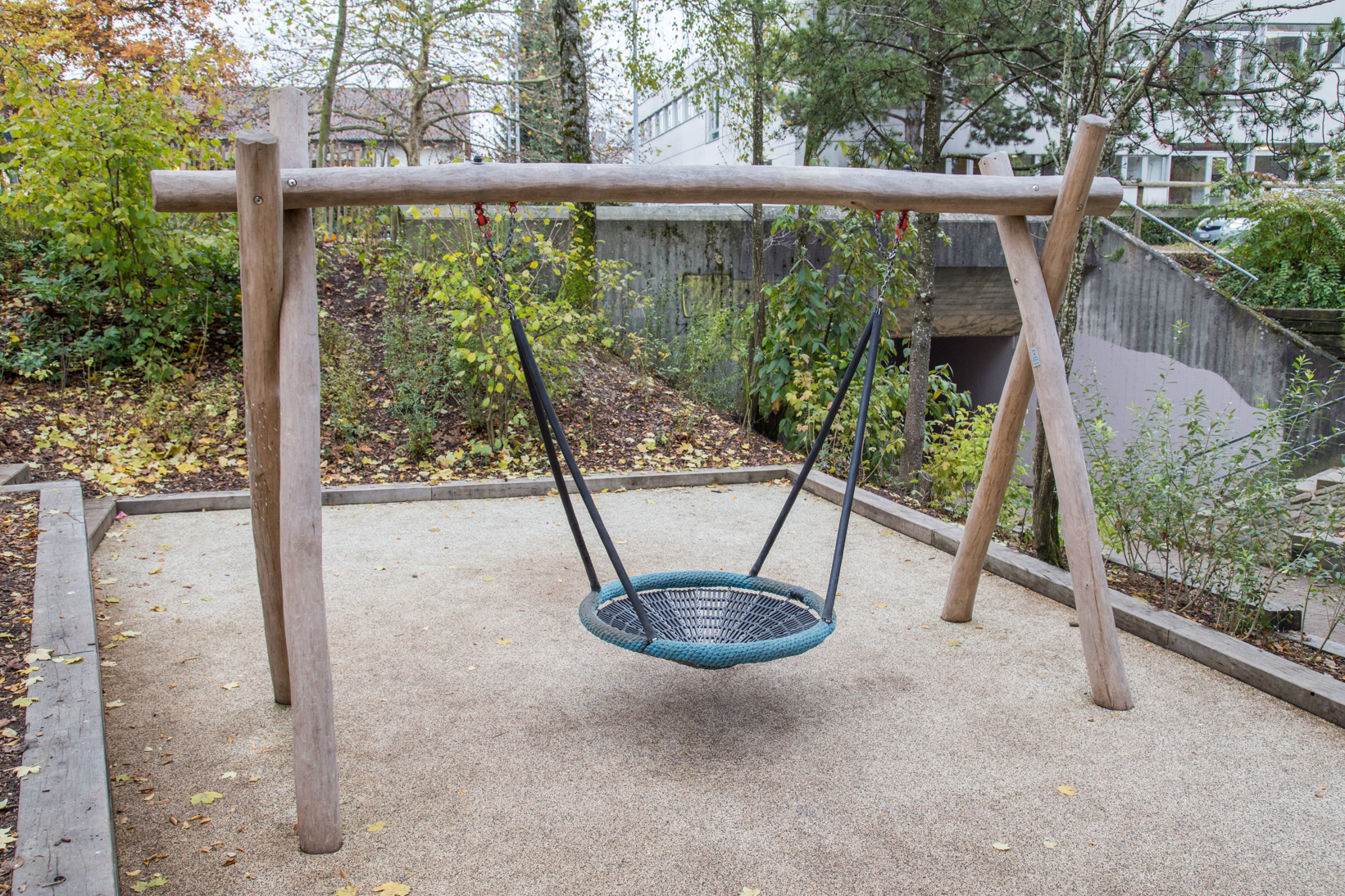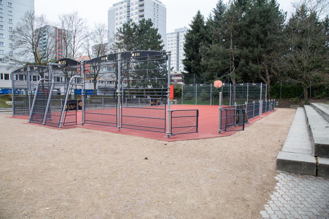 Rénovée en 2018, la place de jeux du Grand-Pré se compose de deux espaces bien distincts. Un terrain multisport en revêtement synthétique, des tables de ping-pong et des terrains de pétanque occupent la partie sud. La partie nord, plus familiale, propose des engins de jeux classiques et des espaces de repos, à l’ombre des érables.