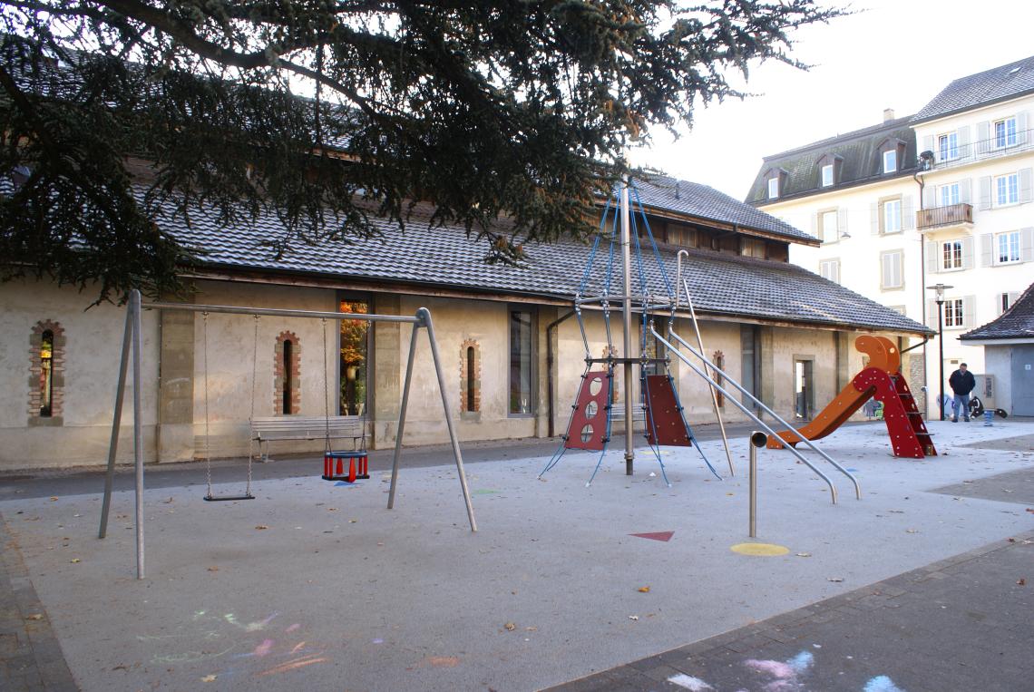 Rénovée en 2020, la place de jeux du quartier d’Alt propose une multitude d’usages. En effet, en plus de jeux variés pour les enfants, on y retrouve des terrains de basket et de pétanque, un jeu d’échec géant et une fontaine qui apporte une touche de fraîcheur. C’est un lieu de rencontre idéal pour tous les habitants du quartier.