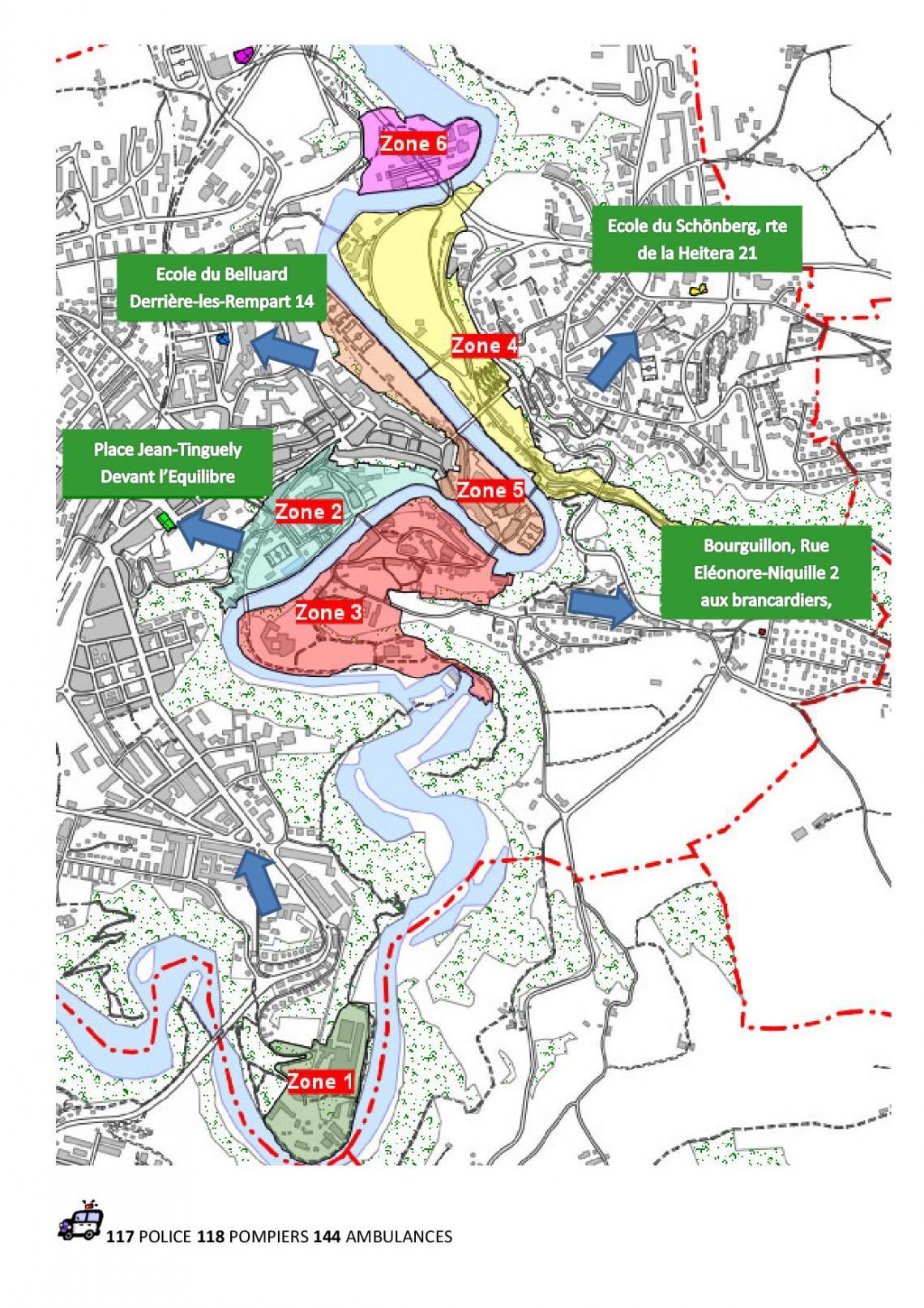 En cas de rupture du barrage de Rossens ou de crue massive et subite de la Sarine, l'alarme eau est déclenchée pour prévenir la population de la menace. Il peut s'agir d'une évacuation préventive ou d'urgence. Le plus important est de quitter le plus rapidement possible la zone dangereuse à pied. Consultez l'aide-mémoire (PDF) pour adopter les bons réflexes! Même si le risque est jugé très faible, il est nécessaire d’être bien informé.