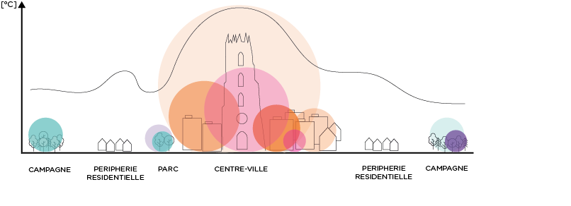 Bien que tout le monde soit concerné par le changement climatique, ce sont les habitants des centres urbains qui sont particulièrement vulnérables aux épisodes de fortes chaleurs. Lors d’une canicule par exemple, les citadins ne bénéficient plus de la fraicheur nocturne pour rafraichir leur logement ou pour reposer leur métabolisme. Une vague de chaleur présente un risque de déshydratation et d’hyperthermie pour les personnes sensibles (personnes de 75 ans et plus, nourrissons et jeunes enfants, femmes enceintes, personnes malades, personnes travaillant à l'extérieur ou pratiquant une activité sportive).