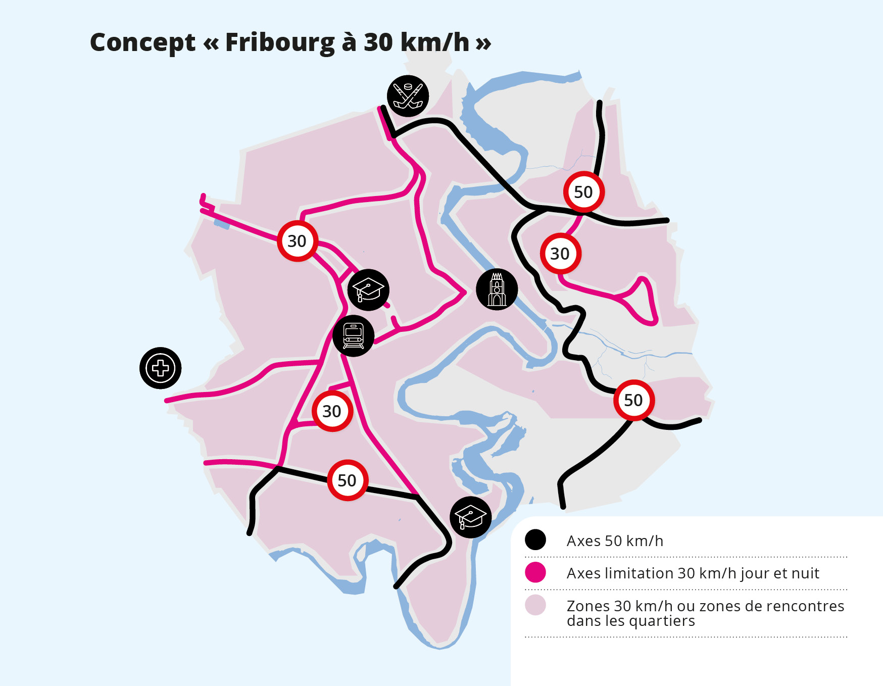 Cette page concerne le projet d'assainissement au bruit routier et n'est plus mise à jour. Pour des informations actuelles, vous pouvez vous référer à la page ville-fribourg.ch/love30
