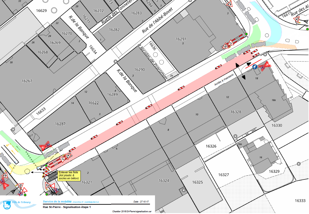 Publié dans la presse, dans le cadre de l’annonce de l’ensemble des travaux planifiés en 2018, la rue Saint-Pierre fera l’objet d’un tel assainissement. En complément du remplacement de la couche de roulement existante, par un revêtement phono absorbant, un renforcement de la structure de chaussée s’avère nécessaire, non seulement sur les voies de bus, mais également sur les voies de circulation réservées au trafic individuel. Les arrêts de bus en béton feront également l’objet de réparations mineures par zones.