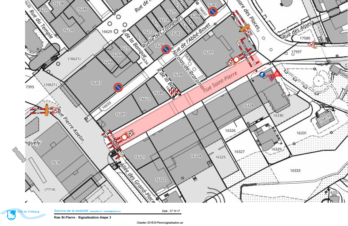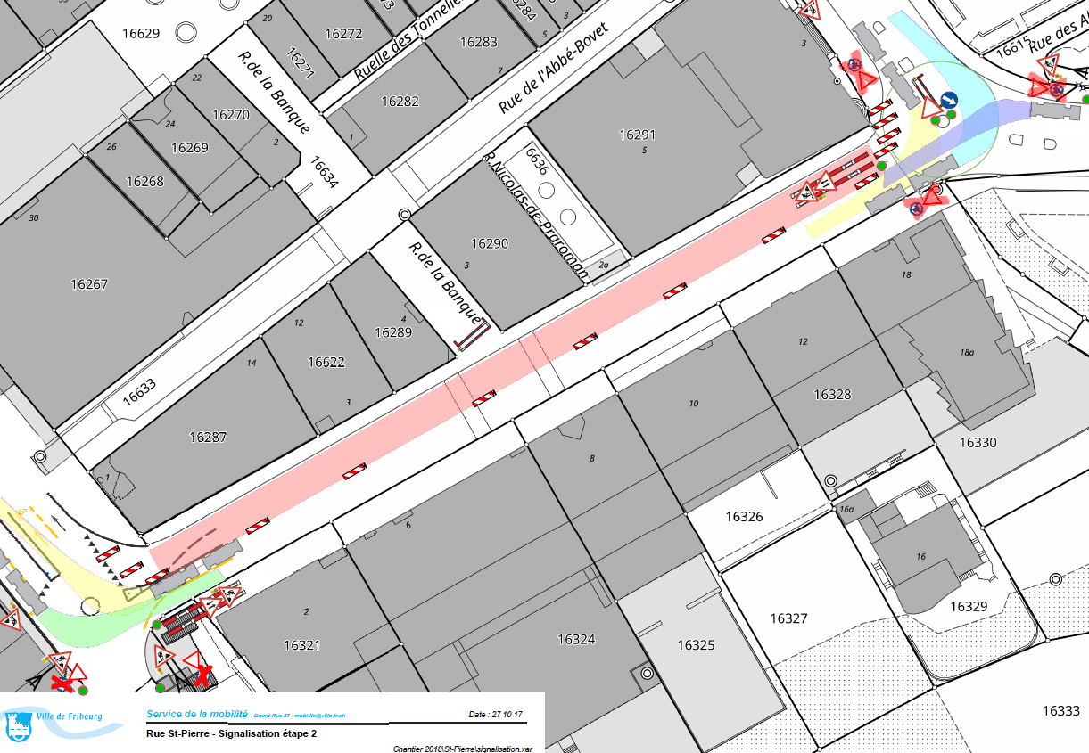 La Ville de Fribourg réalise, depuis 2011, les travaux d’assainissement au bruit routier, sur les secteurs présentant un degré de dépassement des valeurs d’exposition.