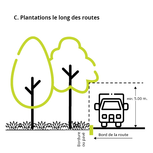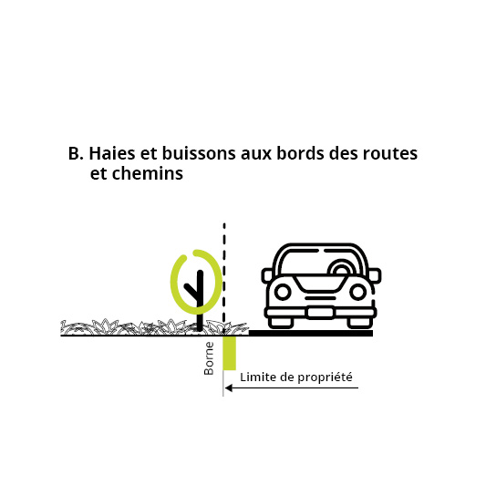 Ceci s’applique également pour toute végétation qui masque la signalisation routière, l’éclairage public et la visibilité aux carrefours et accès.
