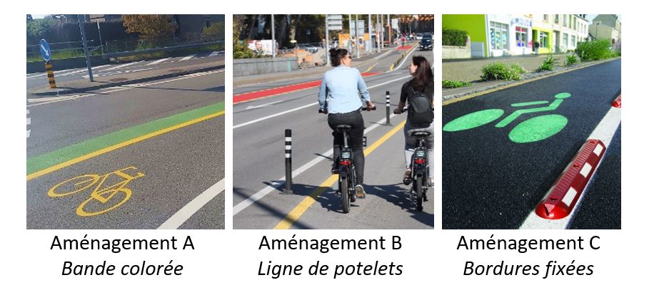 Trois types d'aménagements cyclables sont actuellement testés sur le boulevard de Pérolles : une bande colorée, une ligne de potelets et des bordures fixées. Dans quelle mesure vous sentez-vous en sécurité et quel est votre niveau de confort avec ces aménagements ? Répondez à notre questionnaire. Votre avis est précieux.